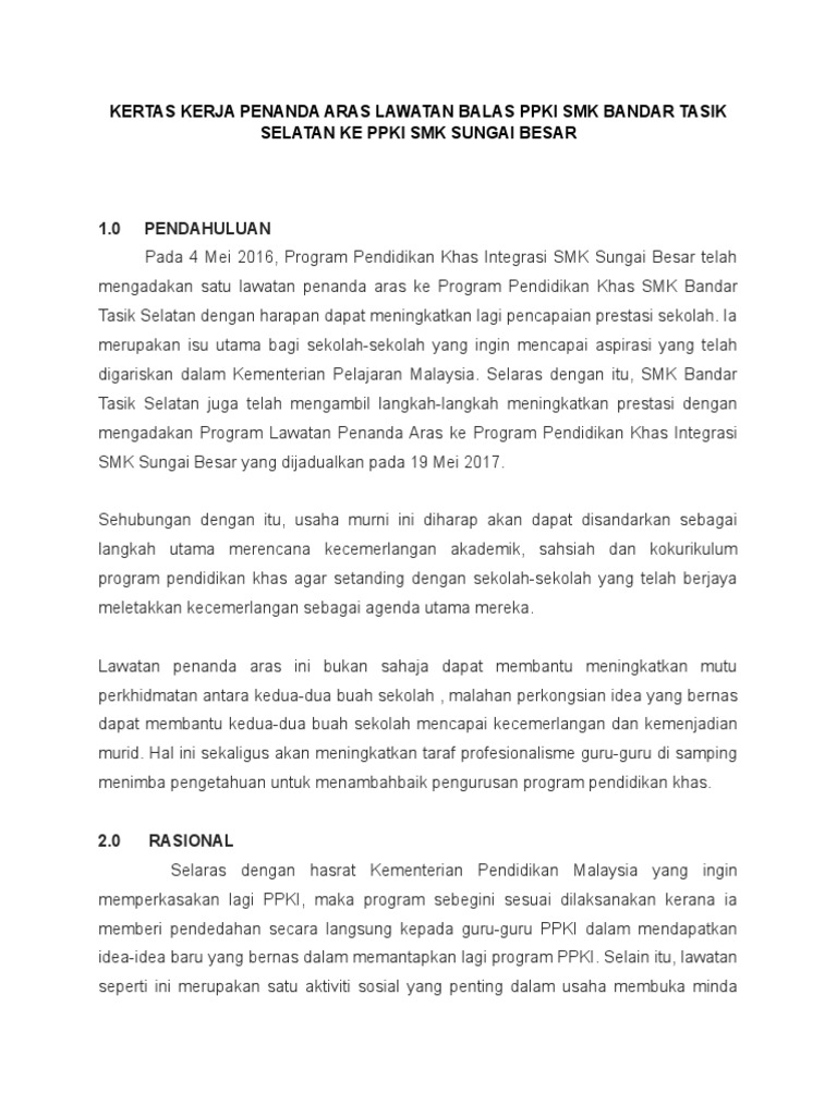 Kertas Kerja Lawatan Penanda Aras Ke Sekolah Pdf