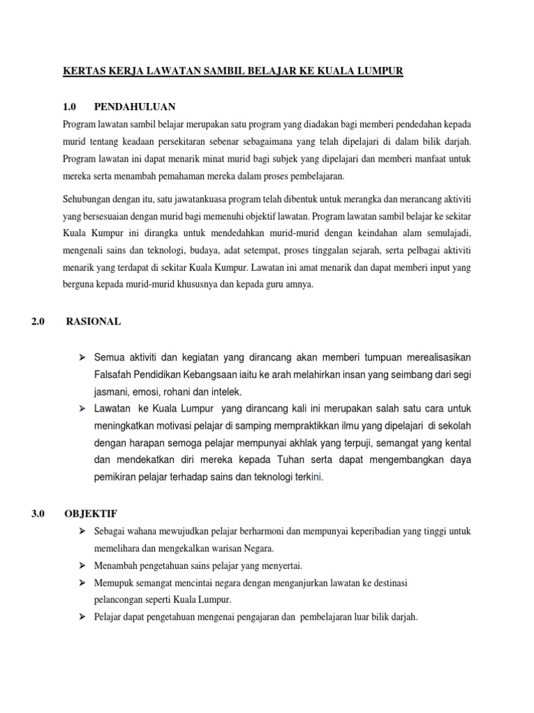 Kertas Kerja Lawatan Sambil Belajar Pdf